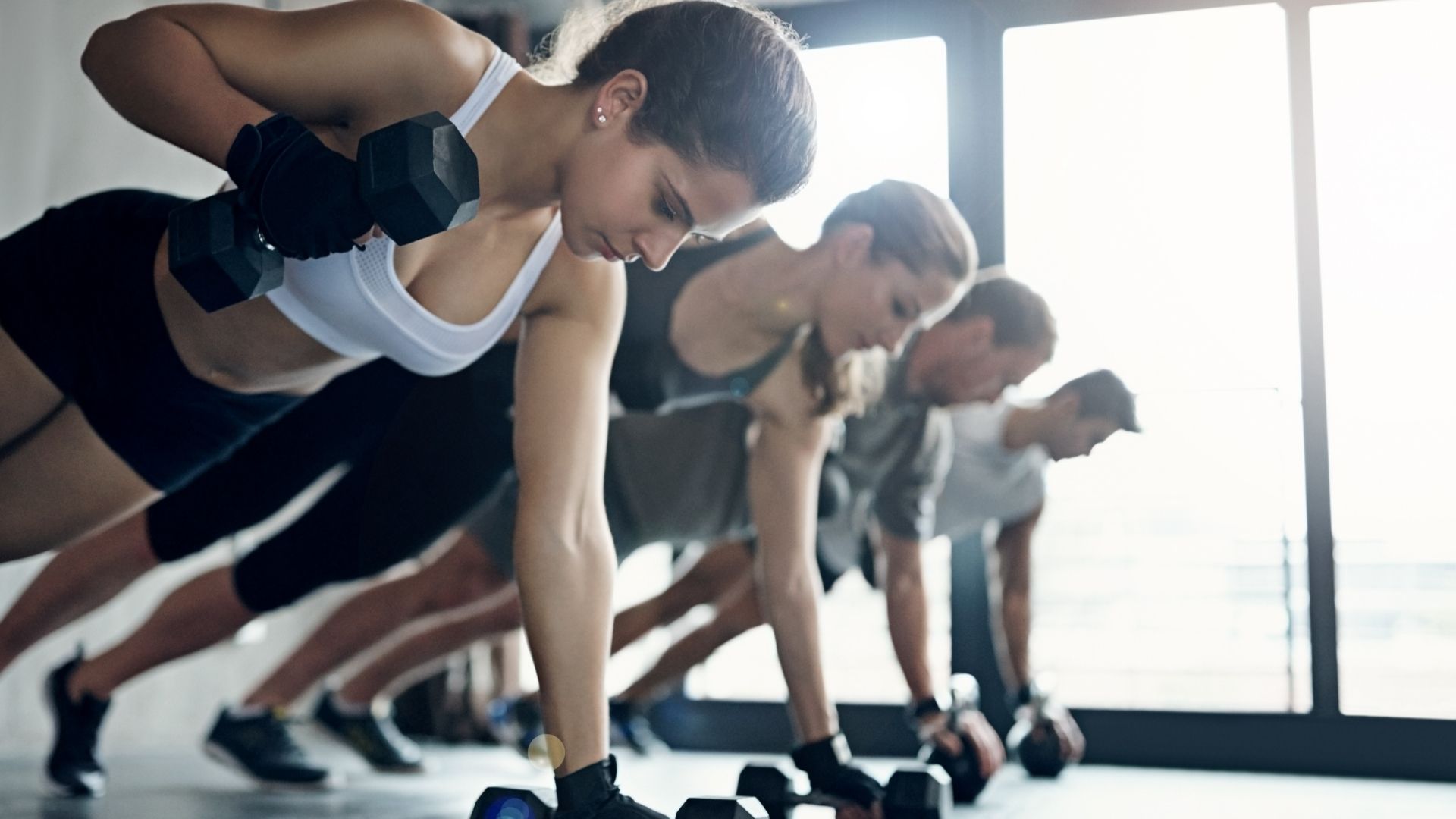 Férfi és nő edzőteremben hátgyakorlatot végez