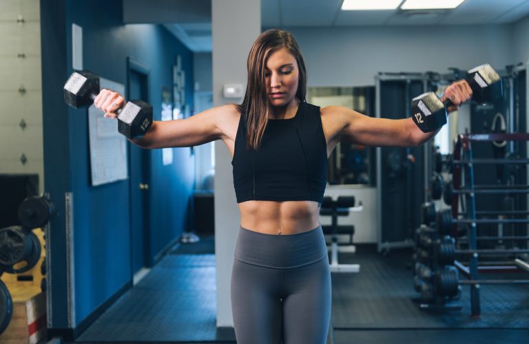 - Végrehajtás: Kis súllyal dolgozz, karodat enyhén hajlítva emeld oldalra, amíg vállmagasságig ér. Ne lendületből dolgozz!